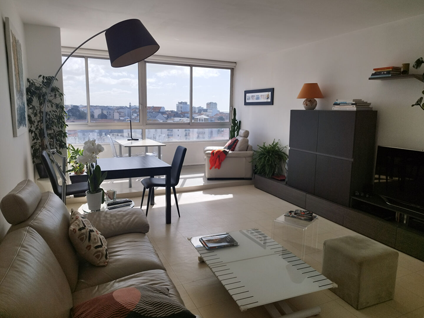 EXCLUSIVITE ! Situé dans le Centre ville, vous pourrez profiter de tous les commerces et de la plage à pieds. Situé au 7e et dernier étage, cet appartement T3 traversant offre une entrée, un séjour avec loggia exposé sud-est, une cuisine indépendante aménagée, un dégagement avec placards, deux chambres dont une avec placards, une salle d’eau, wc. Grande cave. Place de parking privée en sous-sol. Le chauffage et l’eau sont collectifs, inclus dans les charges de copropriété. Son plus : belle vue dégagée sur la ville, et aperçu mer !
