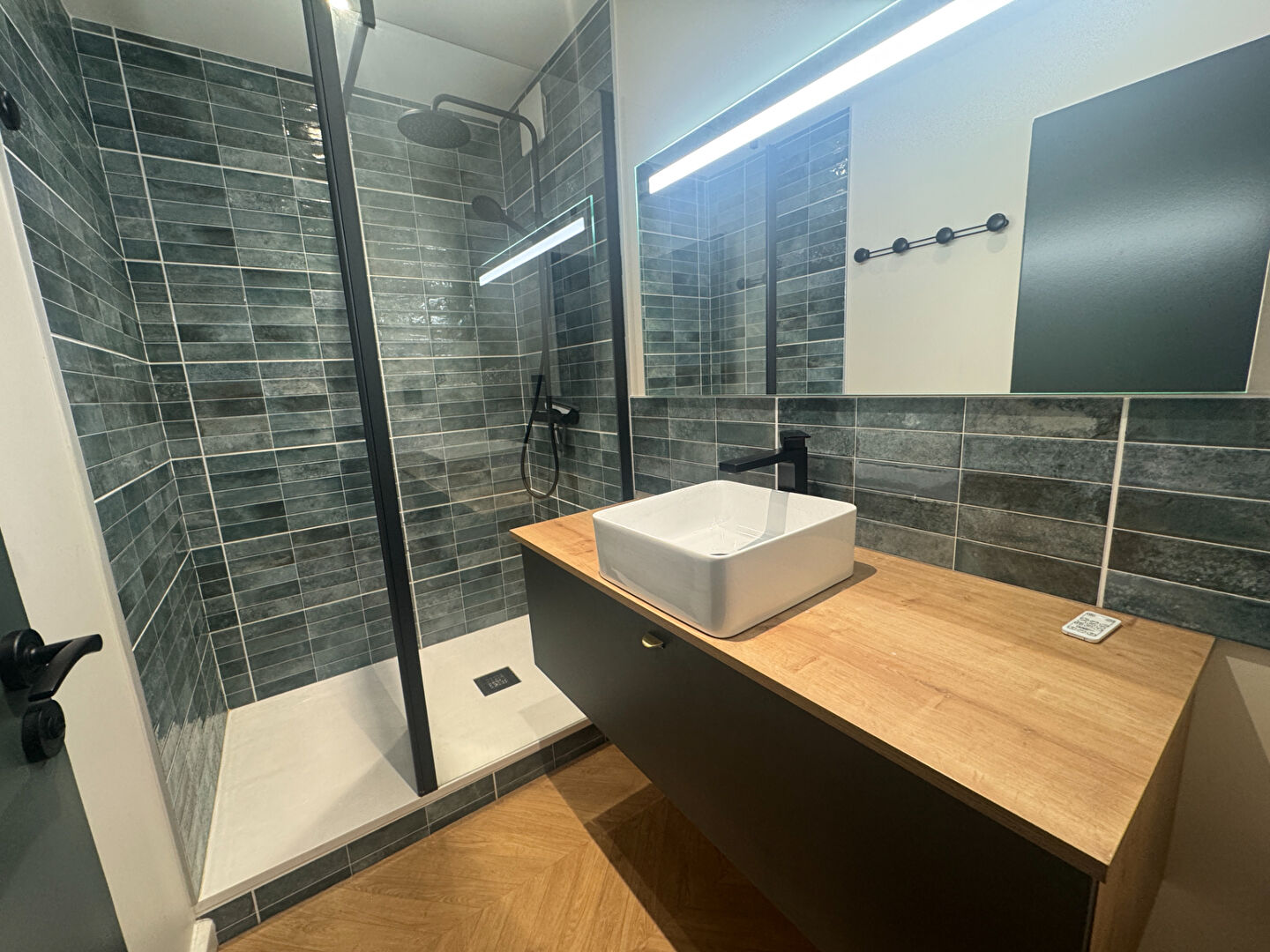 Au 3 -ème étage d’une résidence avec ascenseur, studio face mer entièrement rénové avec des matériaux de qualité et décoré avec gout.