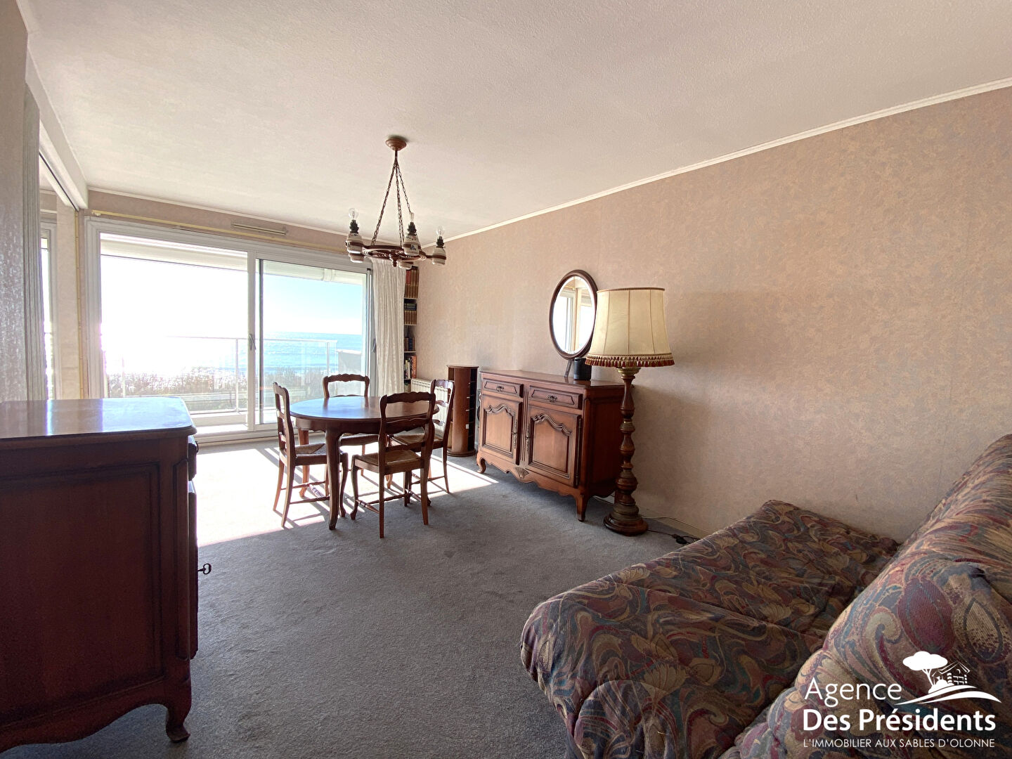L’Agence des Présidents vous présente, en exclusivité AMANDA, face à l’Océan, situé quartier des Présidents, à proximité immédiate des commerces et de la plage, dans un immeuble en copropriété, ravalé récemment, au 2ème étage avec ascenseur, un appartement T3 traversant à rafraichir, offrant une entrée avec placard, double séjour avec balcon double exposé Sud Ouest, store banne, avec très belle vue sur l’Océan et la baie des Sables d’Olonne, chambre avec placard, possibilité de deuxième chambre, une salle d’eau, cuisine aménagée équipée indépendante, WC avec lave mains.