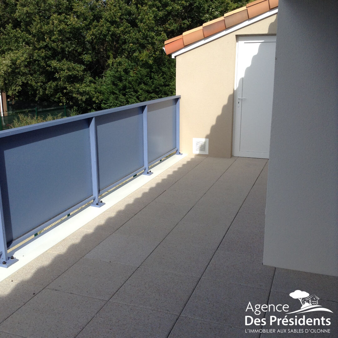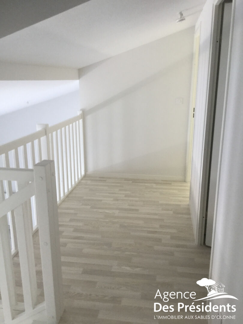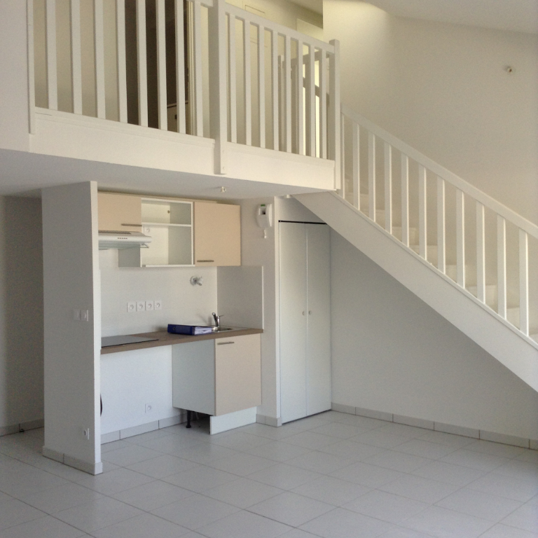 Appartement T3 en duplex de 2017 en location à l’année, comprenant une entrée, un séjour, une cuisine A et E ouverte, placard, 2 chambres avec placards, une salle d’eau, WC, un cellier, une grande terrasse de 19m² un emplacement de parking extérieur.