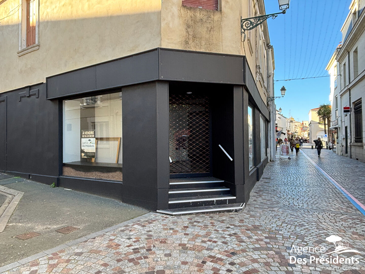 Emplacement exceptionnel en plein centre-ville des Sables d’Olonne, entre le jet d’eau et l’hôtel de ville. Local commercial de 100 m² avec 3 vitrines sur les rues piétonnes.