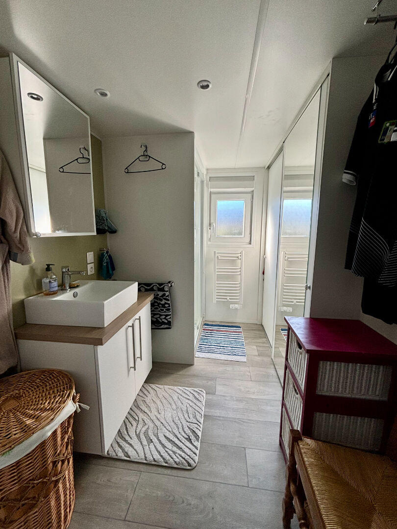Au sein du NEW LODGE, Domaine du Lac : un terrain de 512m² avec lodge de 96m² composé d’une spacieuse pièce de vie avec cuisine aménagée et équipée, arrière cuisine aménagée, suite parentale avec dressing et salle d’eau avec wc, 2 chambres dont une avec dressing, salle d’eau, wc indépendant.