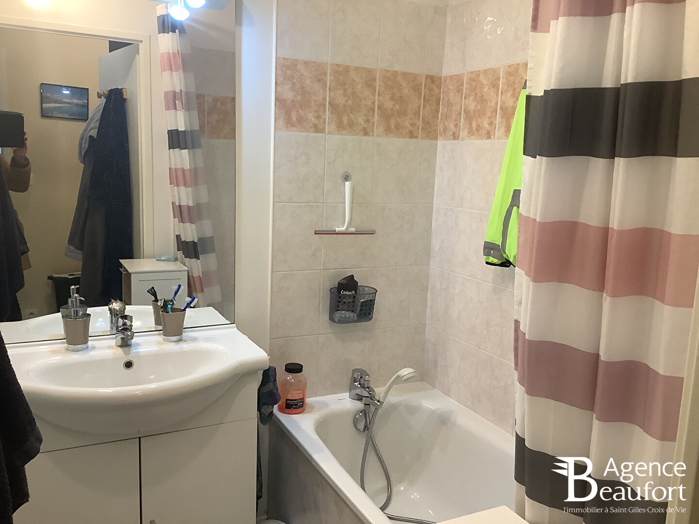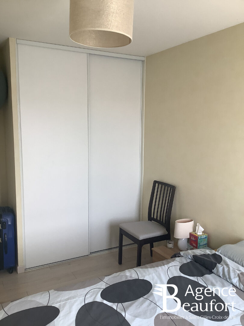 Dans ensemble immobilier à deux pas du centre-bourg, maison à étage de 56.12m2 habitables avec courette sur l’avant (6,12m2) et 2 places de parking : séjour (22,82m2) avec grand placard aménagée, coin cuisine (4,47m2) et à l’étage : 2 chambres (12.80m2 et 7.72m2) dont 1 avec placard aménagé, salle de bains, wc séparés.