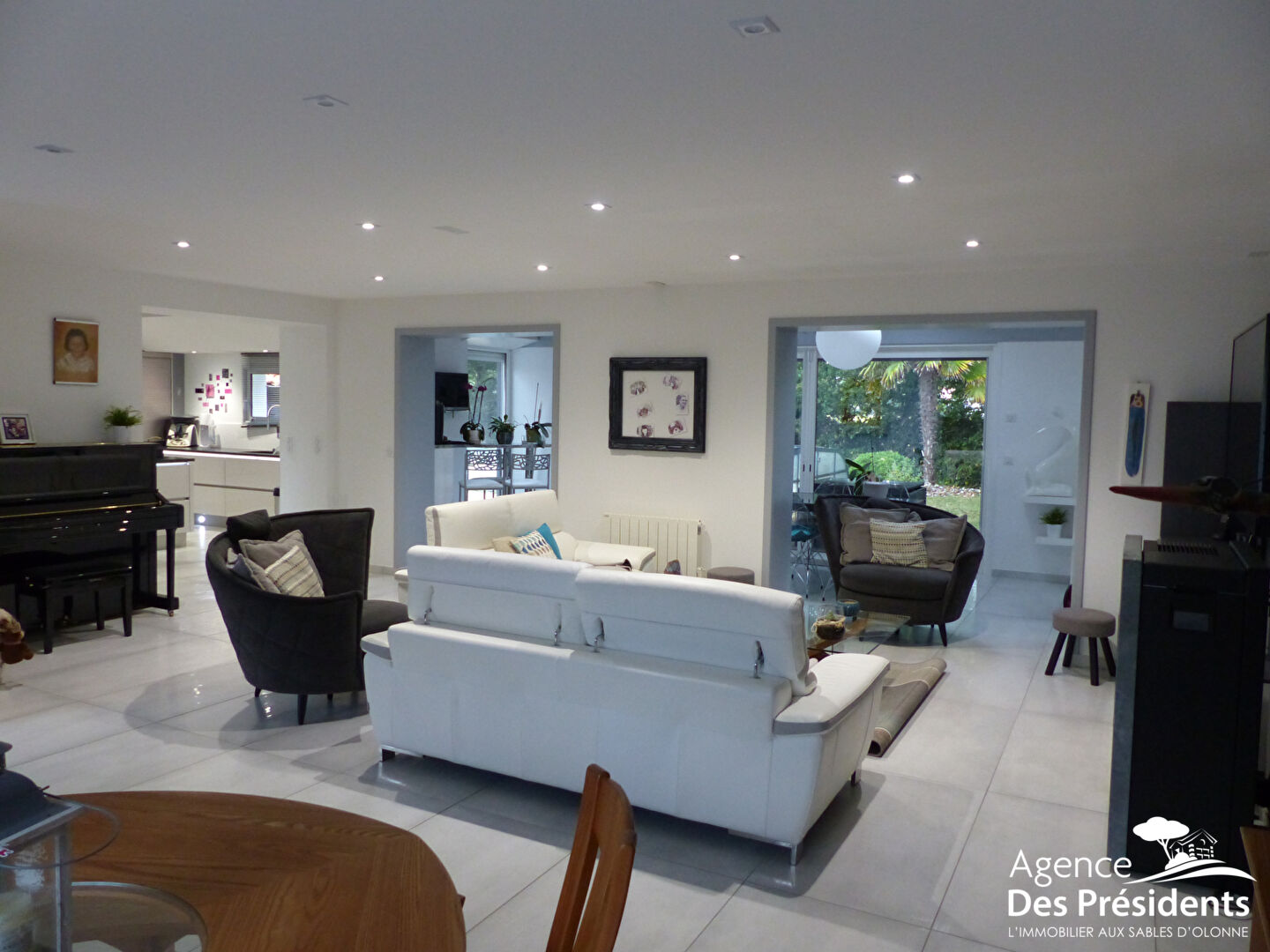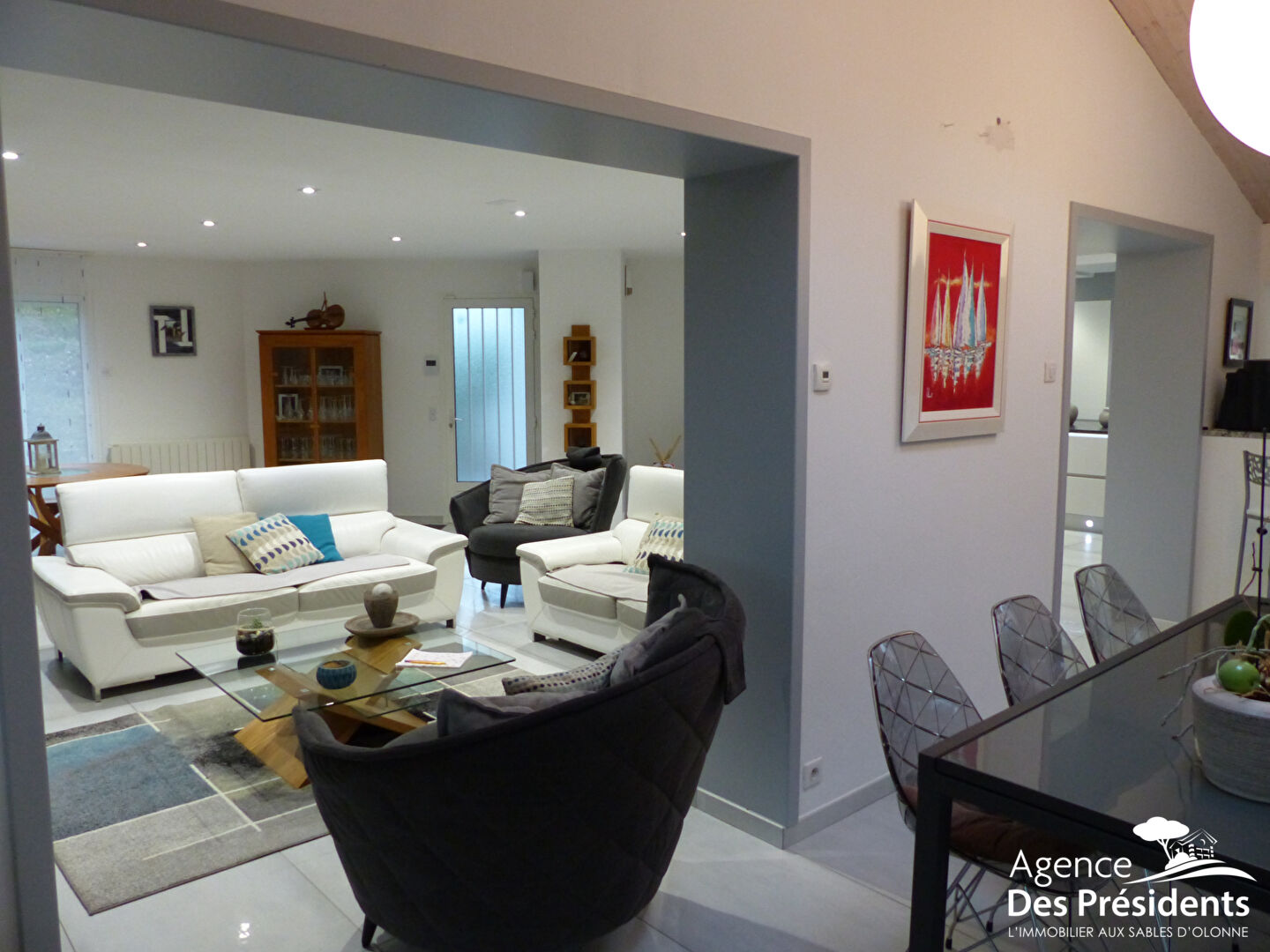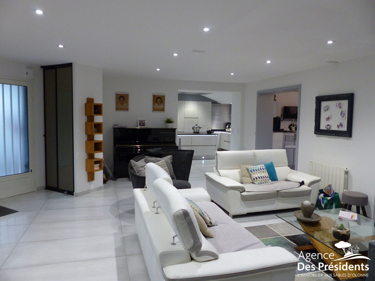 Agence DES PRESIDENTS vous propose : Située à proximité de Bourgenay et le centre historique, cette propriété vous offre une spacieuse pièce de vie, une salle à manger donnant sur le jardin, une cuisine aménagée et équipée, trois chambres et un bureau avec sa terrasse, deux salles d’eau et deux wc. Elle bénéficie également d’une salle de réception de 63 m², d’une buanderie et d’un cellier. Pour accueillir bateaux, voitures de collection, motos, camping-cars, un garage de 130 m² est à votre disposition.