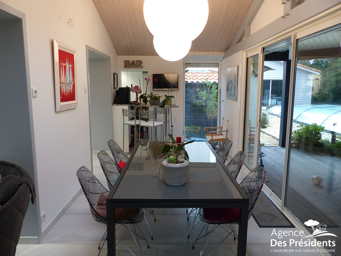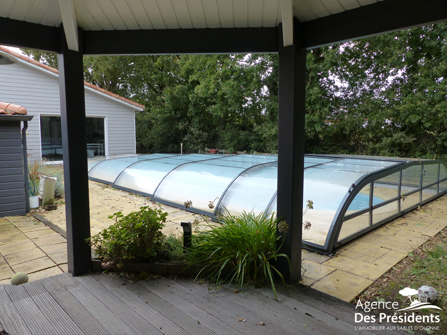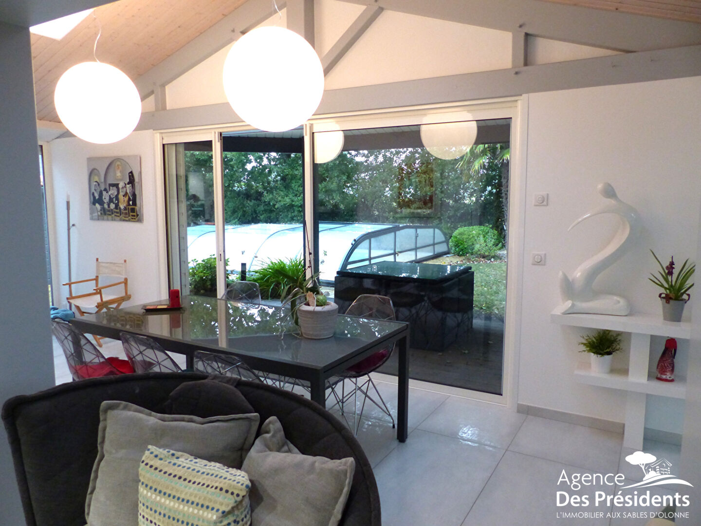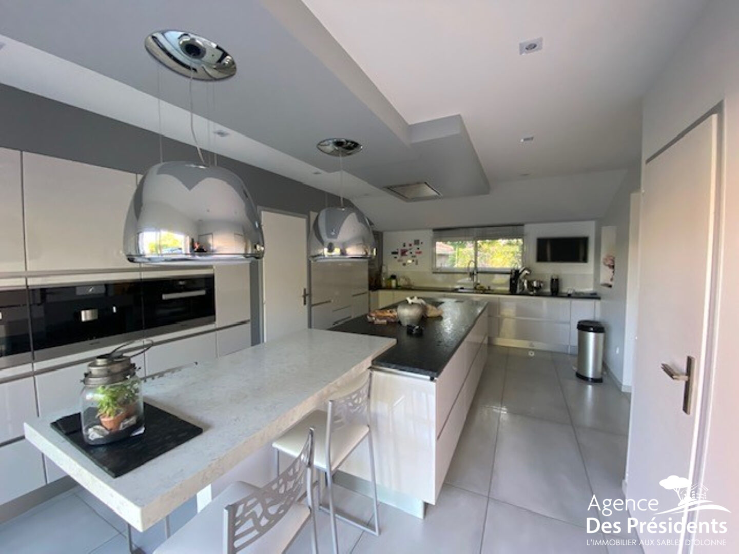 Agence DES PRESIDENTS vous propose : Située à proximité de Bourgenay et le centre historique, cette propriété vous offre une spacieuse pièce de vie, une salle à manger donnant sur le jardin, une cuisine aménagée et équipée, trois chambres et un bureau avec sa terrasse, deux salles d’eau et deux wc. Elle bénéficie également d’une salle de réception de 63 m², d’une buanderie et d’un cellier. Pour accueillir bateaux, voitures de collection, motos, camping-cars, un garage de 130 m² est à votre disposition.