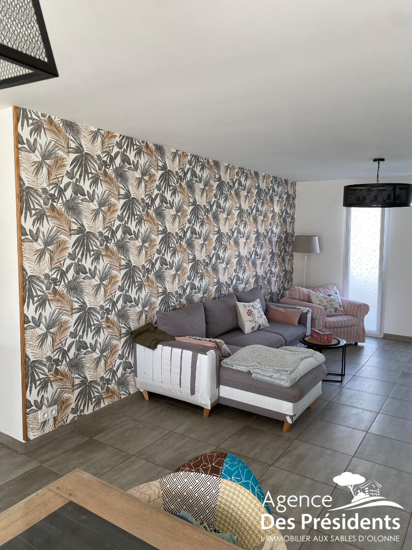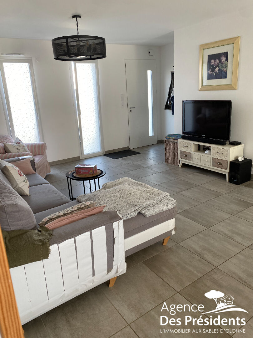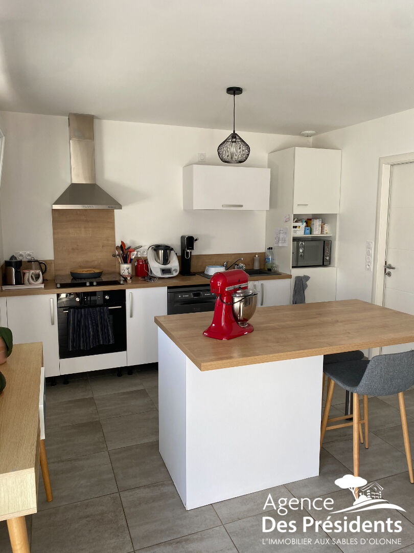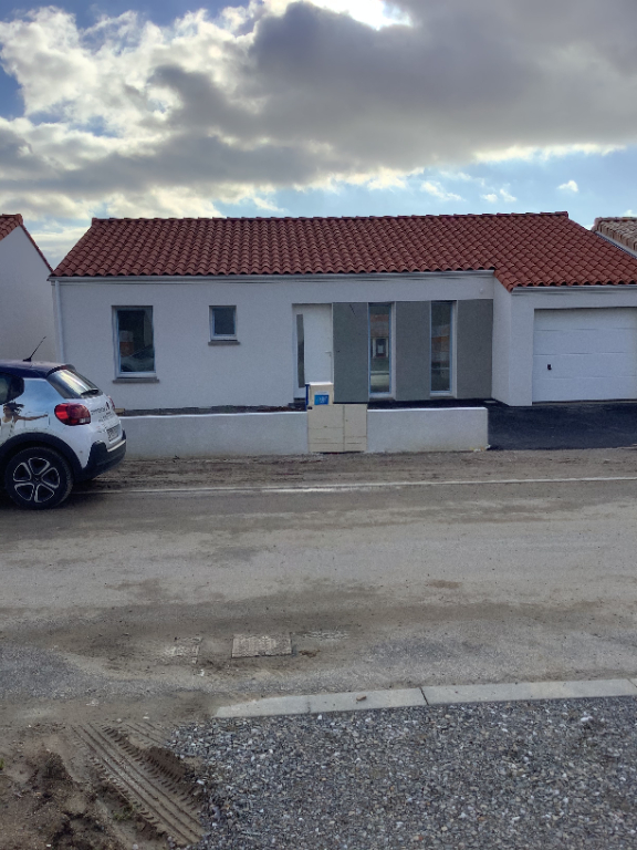 Maison de 2021 de type 4 en location vide à l’année, située à OLONNE/MER comprenant: entrée, grande pièce de vie, cuisine ouverte A/E (hotte, 4 feux vitrocéramiques, four), WC Indépendants. trois chambres avec placard, salle d’eau. Terrasse de 16 m² – Cellier – garage – jardin.