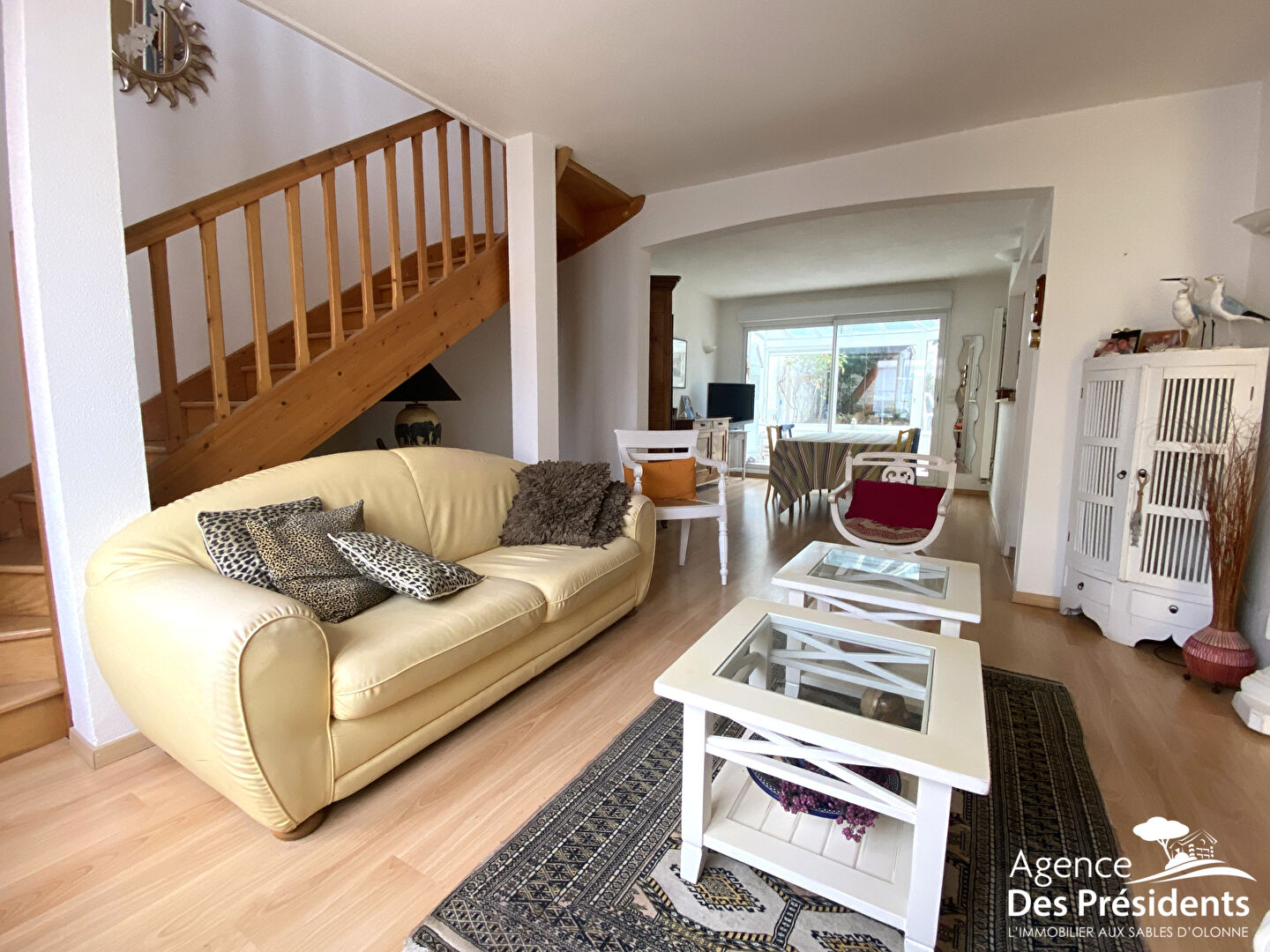 L’Agence des Présidents vous présente, aux Sables d’Olonne, un havre de tranquillité à deux pas de l’océan, de la plage, les commerces du quartier des Présidents et d’Arago à quelques pas seulement, dans le quartier recherché des Présidents, une maison offrant un hall d’entrée, un séjour salon traversant avec cuisine ouverte aménagée équipée, une véranda sur jardin clos et paysagé, une chambre, un dressing, une salle d’eau, un WC indépendant. A l’étage, deux chambres, une salle d’eau avec WC, et un espace salon traversant. Un précieux garage avec cellier, une cave et un cabanon s’ajoutent à l’ensemble. Jolie maison entretenue, en bon état général.