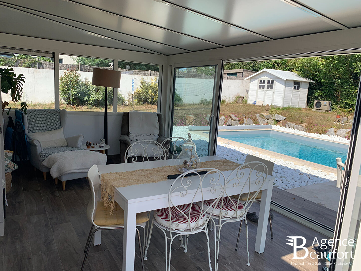 Exclusivité AMANDA – Maison de 2008 à 800 m des commerces du centre ville. Elle offre : séjour-salon, cuisine aménagée et équipée, 3 chambres, salle de bains, wc. Garage. Belle véranda donnant sur piscine béton de 2021 chauffée. Le tout sur terrain clos et arboré de 711 m².