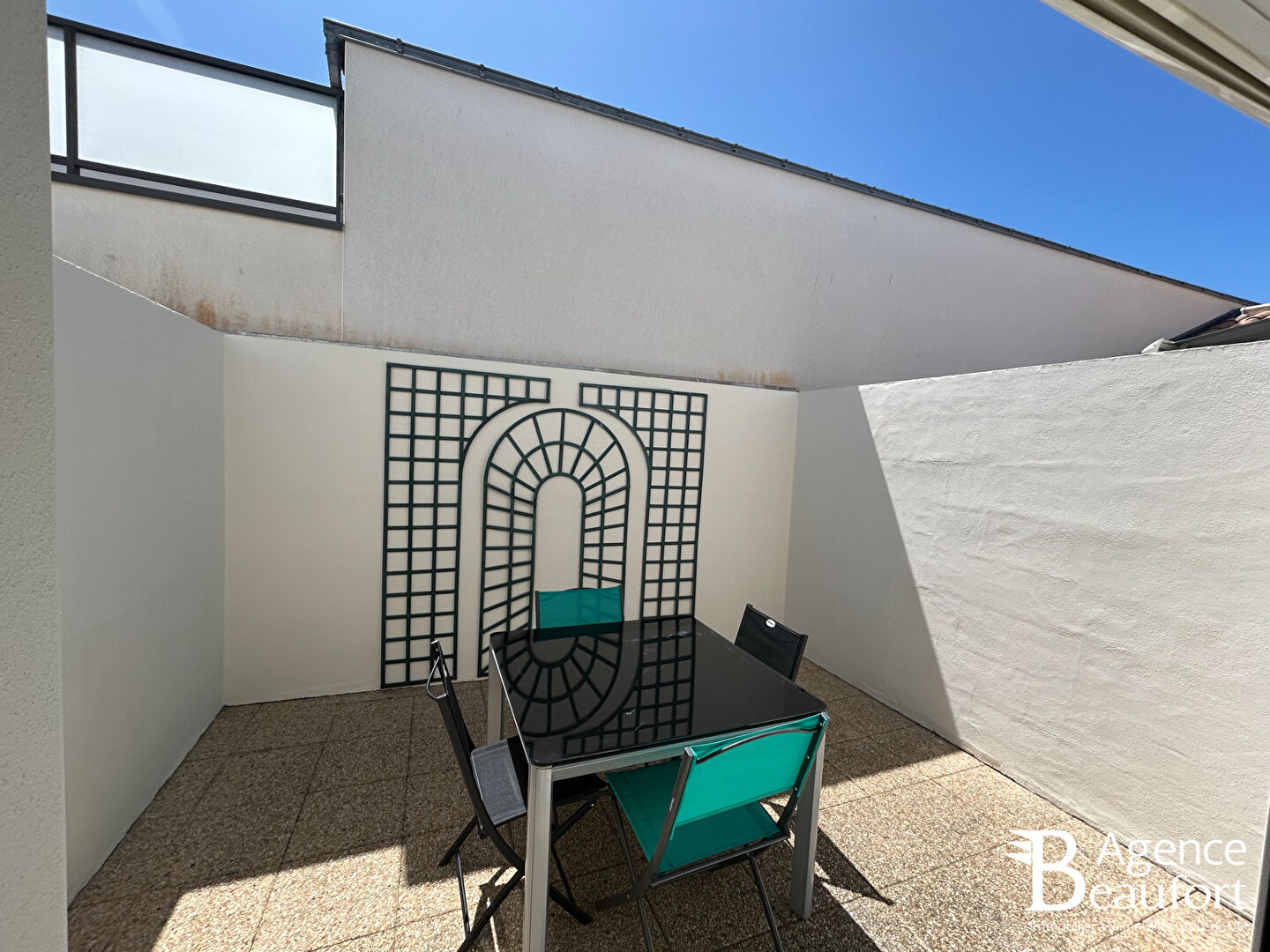 EXCLUSIVITÉ – Dans secteur recherché, proche plage. Maison en excellent état, comprenant : entrée, pièce de vie avec cuisine aménagée et équipée donnant sur terrasse SUD, cellier, wc. A l’étage : 2 chambres, salle d’eau-wc . Garage privé.