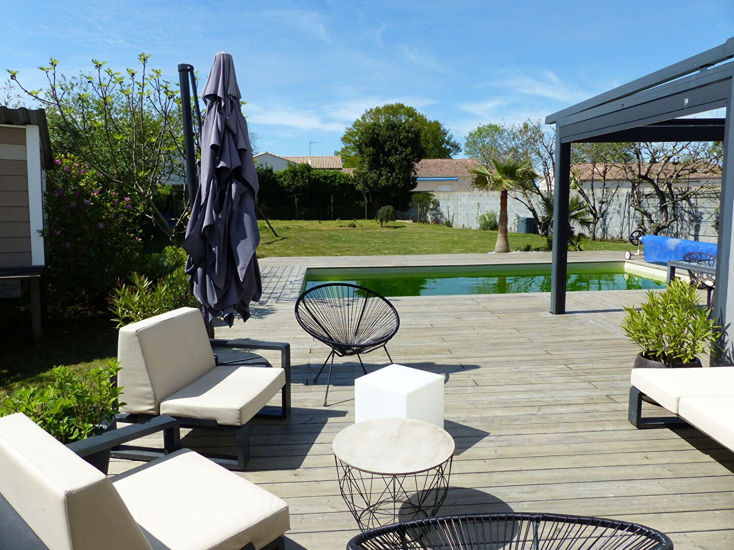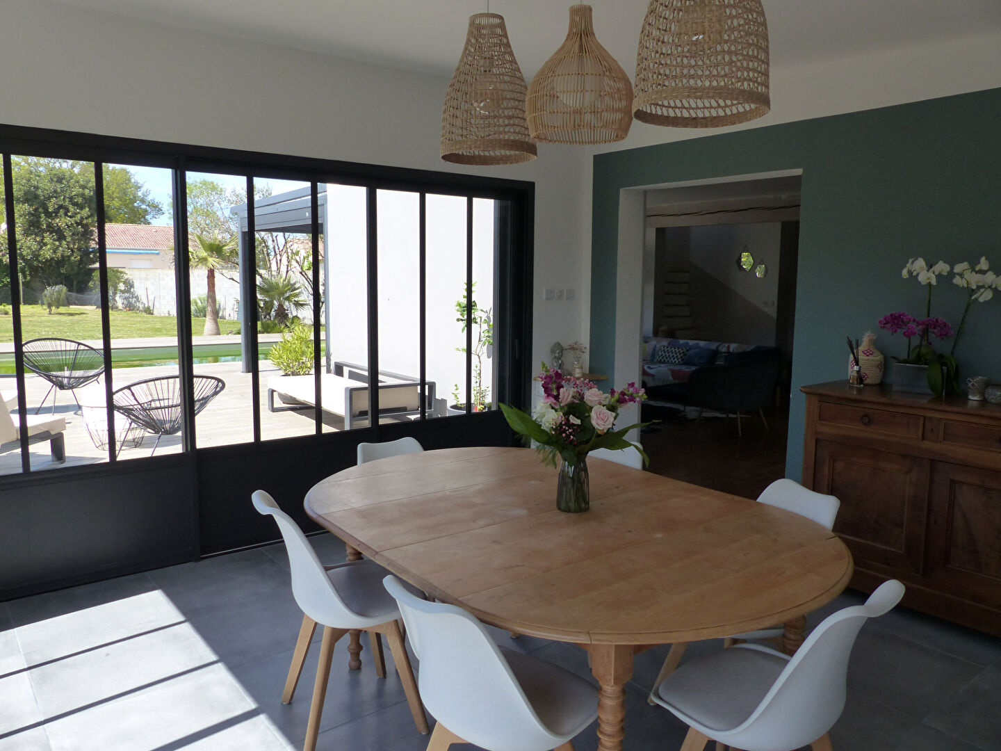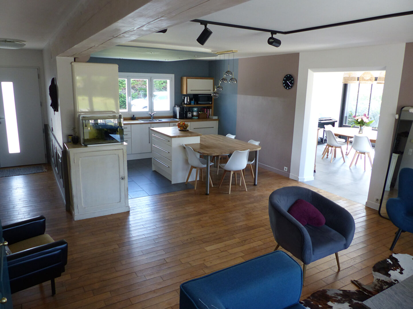 Agence DES PRESIDENTS vous propose : EXCLUSIVITE ! A deux pas des commerces de proximité (boulangerie, supérette, bureau de tabac), belle maison rénovée de 148 m² habitables à la décoration soignée. Elle dispose d’une pièce de vie avec une cuisine ouverte aménagée et équipée, d’une salle à manger (agrandissement 2023), wc séparés, et à l’étage 4 grandes chambres avec placards, un dressing, une spacieuse salle de bains avec baignoire, douche et double vasque, wc séparés. Une buanderie/chaufferie de 35 m² avec beaucoup de rangements vient compléter la surface (possibilité de remettre en garage. Vous bénéficierez également d’un beau terrain arboré de 1057 m² avec piscine (2020) et terrasses, et d’un atelier.